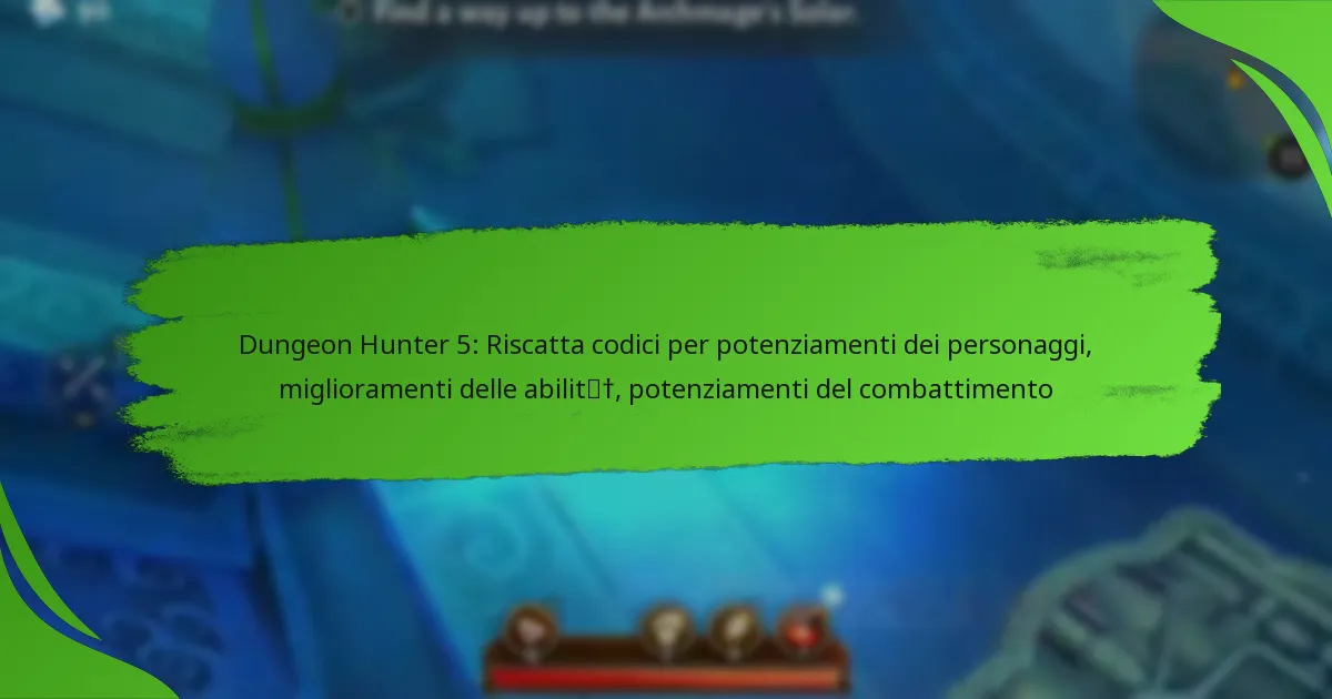 Per riscattare i codici in Dungeon Hunter 5, i giocatori devono inserire codici specifici all’interno del gioco per sbloccare potenziamenti per i personaggi, miglioramenti delle abilità e potenziamenti per il combattimento. Il processo è semplice e può migliorare significativamente la tua esperienza di gioco.